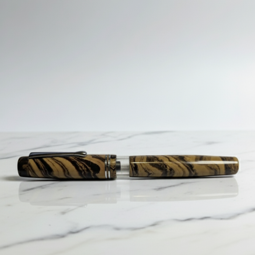 - The rippled/ swirl designs of every ebonite rod is unique therefore there are no two ebonite pens of the same design. The design of the ebonite pen you get may differ from the design shown in the images.